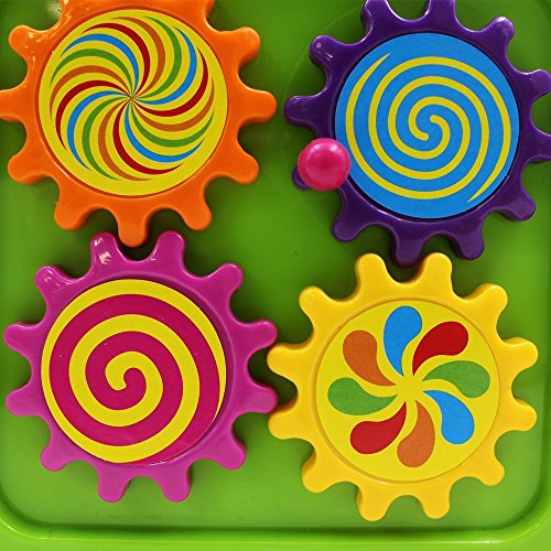 [Shape Learning] Colorful gears to turn around increase the interest of this shape sorter. There also have beads to turn up and down and couple of plastic cards to flip that include numbers and letters.