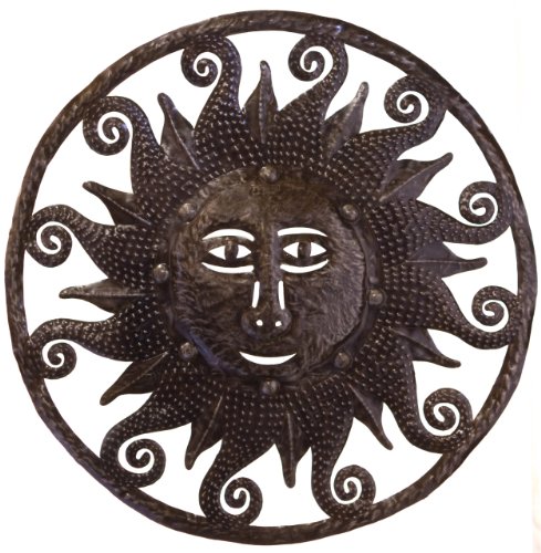 Le Primitif Galleries Haitian Recycled Steel Oil Drum Outdoor Decor, 33 by 33-Inch, Octopus Sun