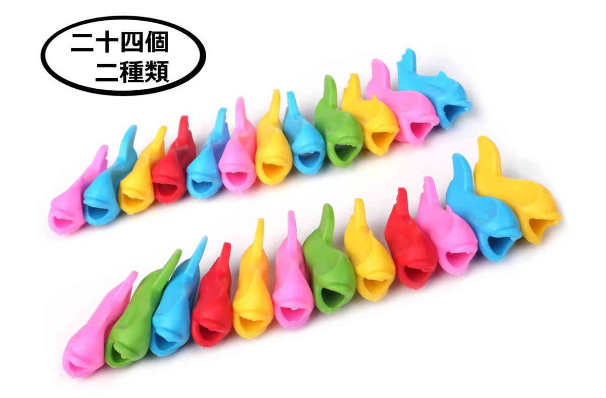 筆記具を正しい角度で持つための矯正グリップ24個セットです。