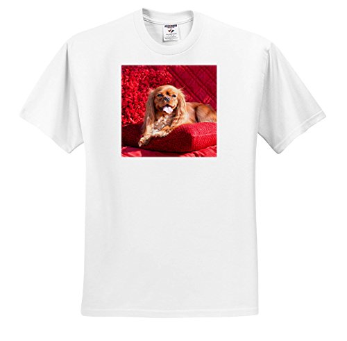 Binding : Apparel Product Description Cavalier lying on red pillow, MR T-Shirt is a great way to show off your true style. Adult and youth sizes are a 50/50 blend of cotton and polyester, toddler sizes are 100% cotton. All sizes are available in white, grey, light blue and pale pink and feature a custom printed image. Made in USA. 0