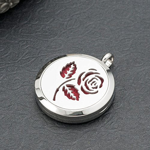 Third Time Charm Rose Aromatherapy Essential Oil Diffuser Necklace Stainless Steel Locket, 12 Refill Pads