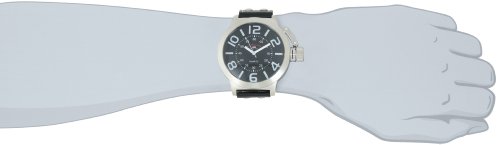 - Feature : Quality quartz movement / Case diameter: 53 mm / Black strap with white stitchings / Buckle clasp / Bold arabic numbers on dial
