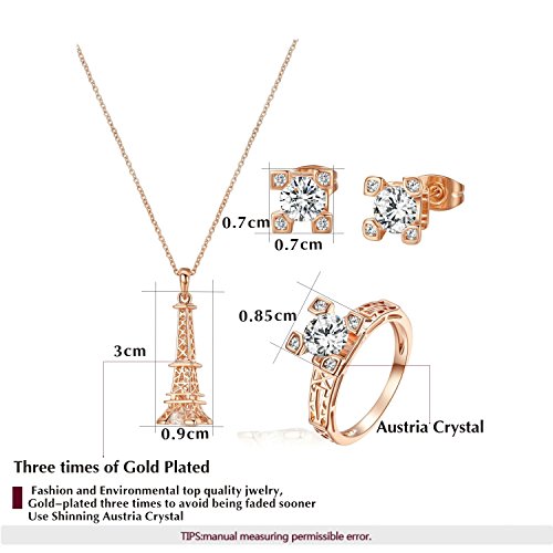 -. Title : Yoursfs Eiffel Tower Jewelry Set 18K Rose Gold Plated Pendant Necklace Zirconia Ring Stud Earrings Set