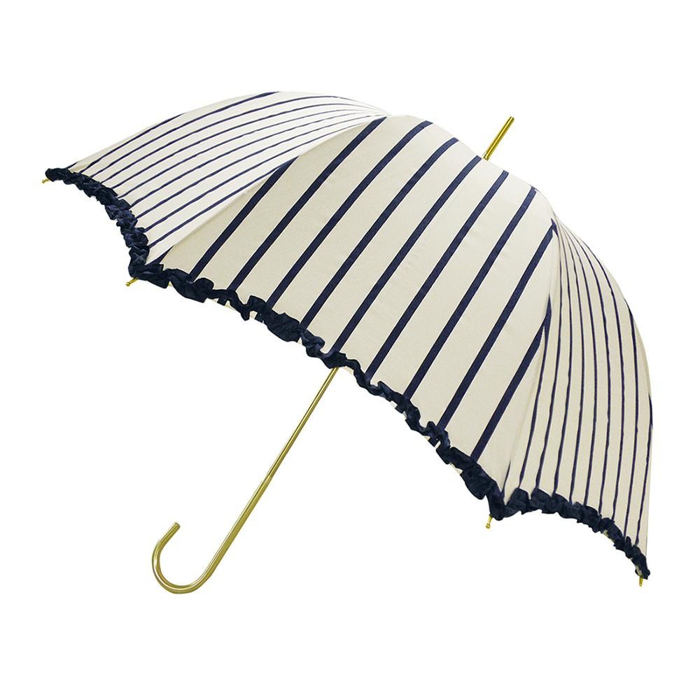 ストライプ×フリルデザインの、深張りタイプの長傘。