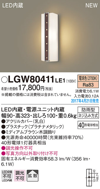 ●材質/色/仕上げ:アクリルカバー(乳白)・プラスチック(プラチナメタリック)・ミディアムブラウン木調飾り