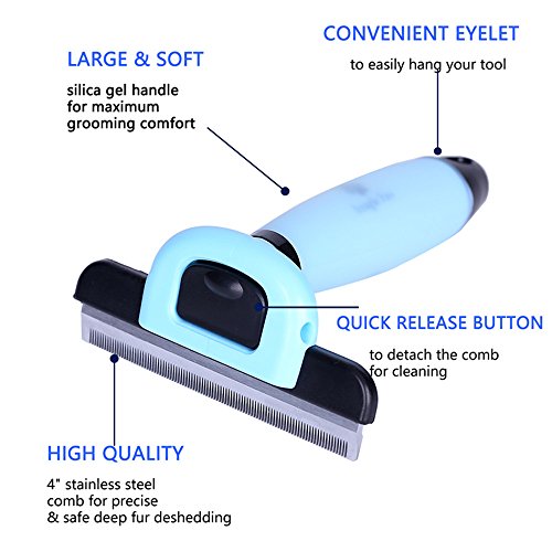 ★ THE PERFECT PET DESHEDDING BRUSH - Approved by Veterinarians, Groomers, and Pet Professionals, effectively reduces up to 95% of shedding hair or tangles from your dog or cat easily IN JUST 10 MINUTES, you will not be troubled by the pet hair all over the floor, furniture or in the car any more.