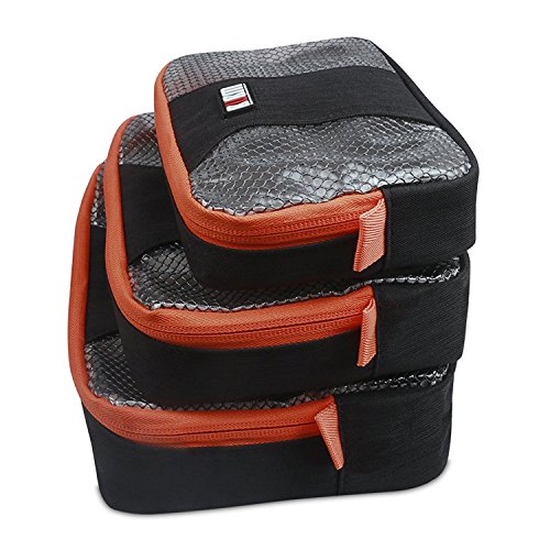 - THE 3 CONVENIENT PACKING CUBES: Made of sturdy nylon, the 3 ZIPPERED compressible packing cubes feature a mesh top panel for easy identification of their content and fit in most airline carry- on suitcases, totes, weekenders and backpacks.