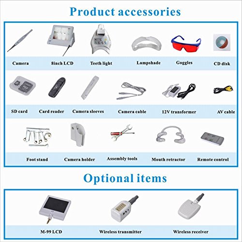 -. Binding : Health and Beauty -. Brand : Aphrodite -. EAN : 0707565708777 -. Feature : 1.High efficiency goose pipe design, adjust angle at random, convenient for use. / 2.High pixels for dental camera with built-in SD card, it can save the pictures permanently. / 3. Combines 8 inch LCD monitor, teeth whitening machine and an intra oral camera. / 4. Tunable bleaching time with microprocessor-controlled timer presets. / 5. Convenient for dentist to make a contrast before and after treatment from the screen. -. Label : Aphrodite -. Manufacturer : Aphrodite -. ProductGroup : Health and Beauty -. ProductTypeName : HEALTH_PERSONAL_CARE -. Publisher : Aphrodite -. Studio : Aphrodite -. Title : Aphrodite-super Teeth Whitening M-86+M-868A+CF-986 Cmos Intraoral Camera 8-inch LCD -. UPC : 707565708777