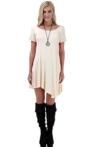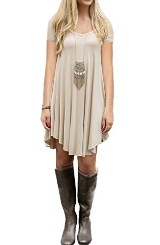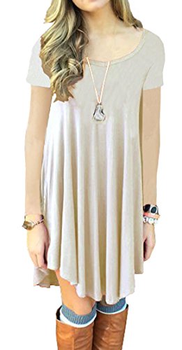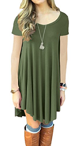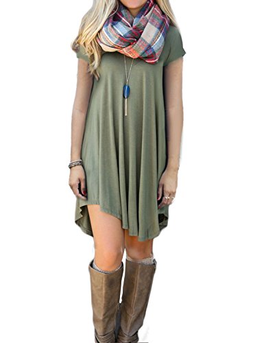 Women's Short Sleeve Casual Loose T-Shirt Dress *Loose, soft and stretchy *Please check the measurement chart carefully before you buy the item. *Size Chart: *XS (US 0-2) Bust: 86cm/33.8" ; Waist:94cm/37.0"; Hip:114cm/44.9"; Length: 86cm/33.8" *S (US 4-6) Bust: 92cm/36.2" ; Waist:100cm/39.4"; Hip:120cm/47.2"; Length: 86cm/33.8" *M (US 8-10) Bust: 98cm /38.6"; Waist:108cm/42.5"; Hip:130cm/51.1"; Length: 87cm/34.2" *L (US 12-14)Bust: 104cm/40.9"; Waist:118cm/46.4"; Hip:144cm/56.7"; Length:87cm/34.2" *XL (US 16-18)Bust: 114cm/44.9"; Waist:121cm/47.6"; Hip:156cm/61.4"; Length: 88cm/34.6" *Please compare the detail sizes with yours before purchasing, and allow 1-3cm differs due to manual measurement *Colors may appear slightly different via website due to computer picture resolution and monitor settings. Product Note: *Accessories: Without Scarf *Style: Casual and All-Purpose Style *Silhouette : Asymmetrical *Neckline: Scoop Neck *Pattern Type: Solid *It is fit for any season,you can wear it in Spring,Summer,Fall,Winter,simple but fashion style dress. Product Note: *Accessories: Without Scarf *Style: Casual and All-Purpose Style *Material: Fabric: 96%RAYON 4%SPANDEX *Silhouette : Asymmetrical *Neckline: Scoop Neck *Pattern Type: Solid *Season: Fall, Spring *100% brand new and high quality *Please compare the detail sizes with yours before purchasing, and allow 1-3cm differs due to manual measurement 0