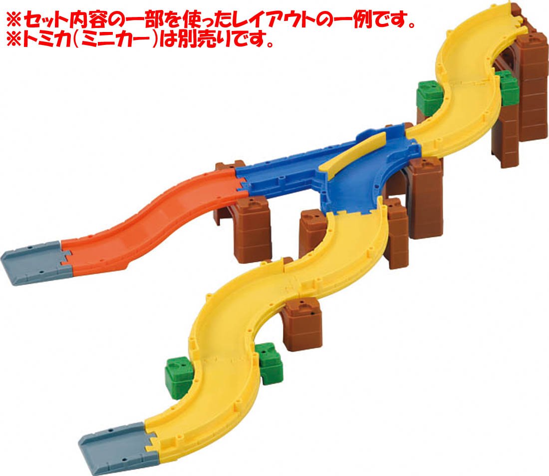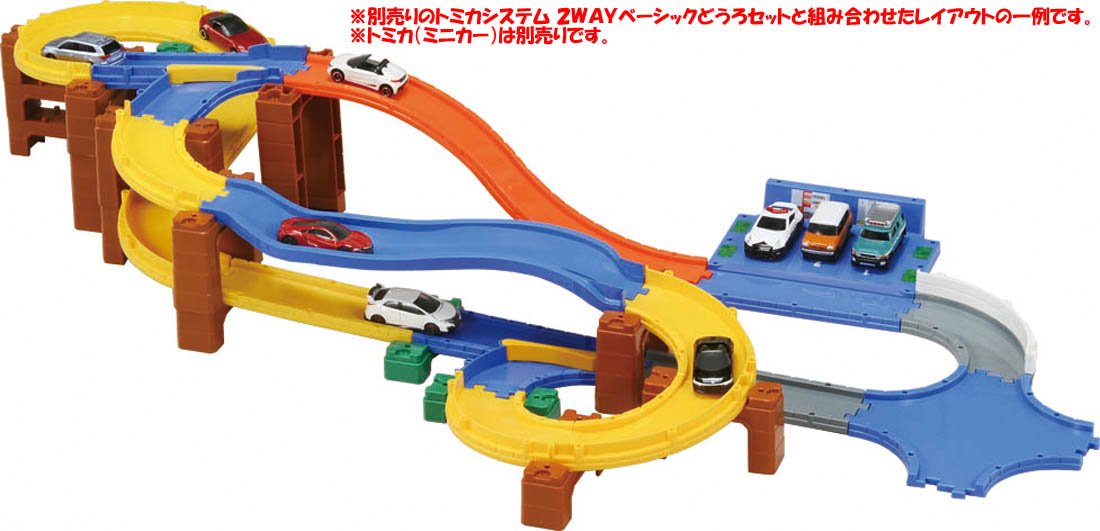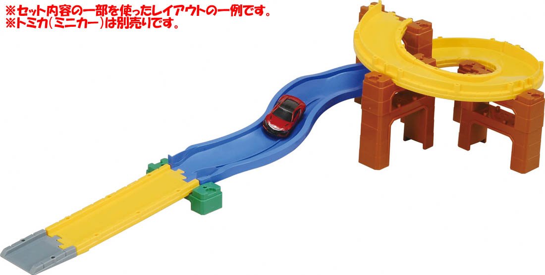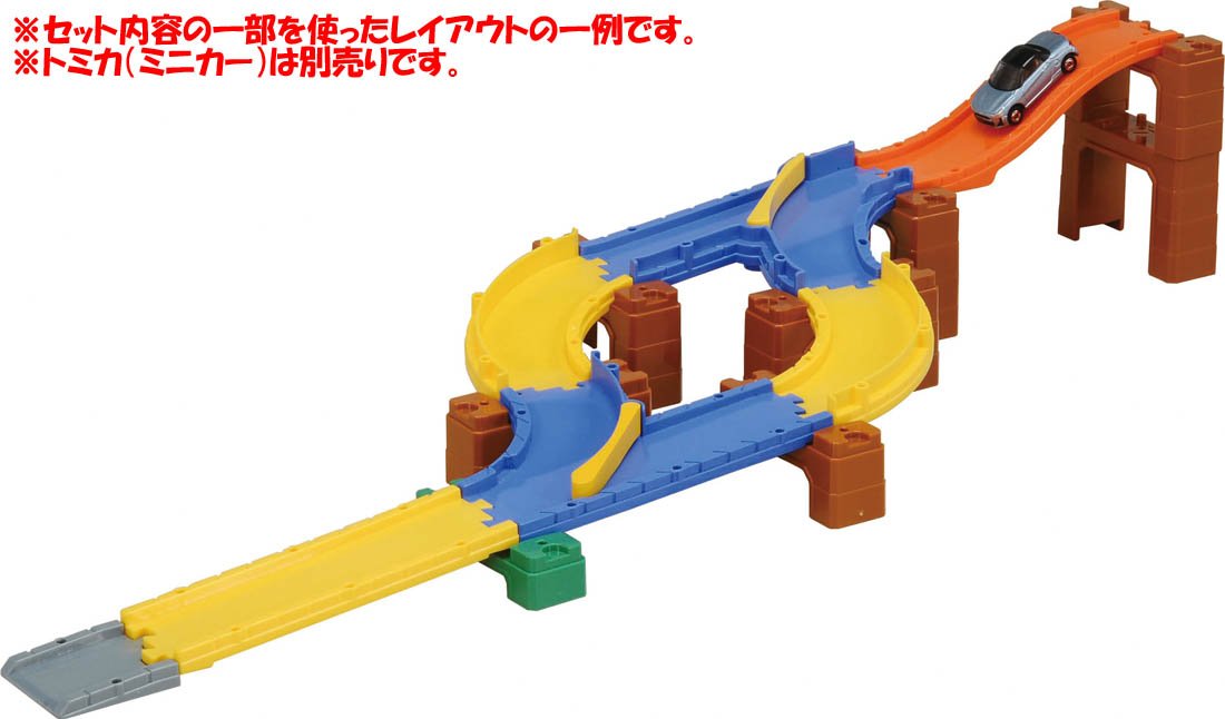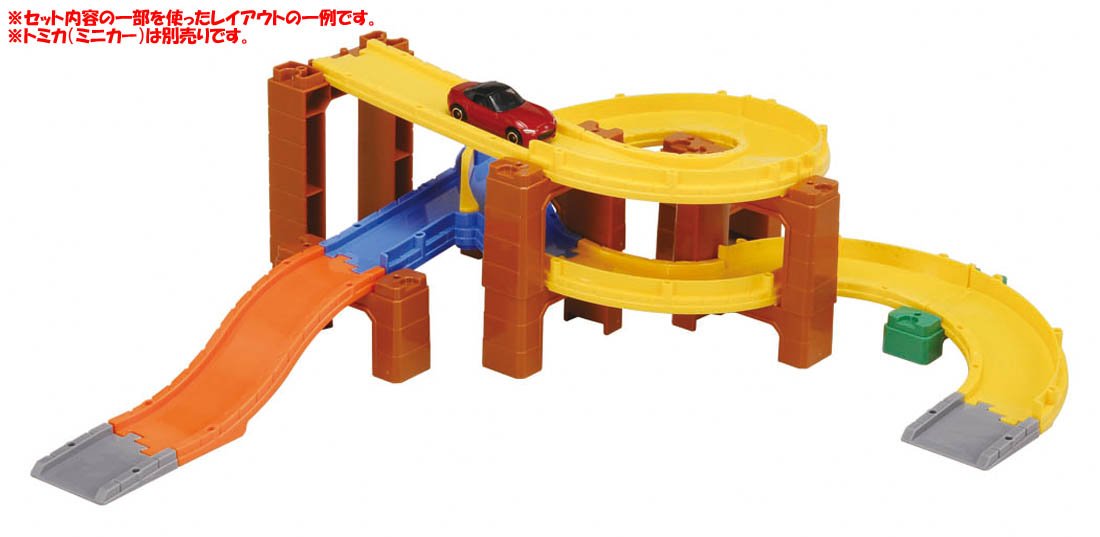 It is a set of parts that you can challenge step by step from the beginning of the Tomica system to complex things using branching / confluence.
