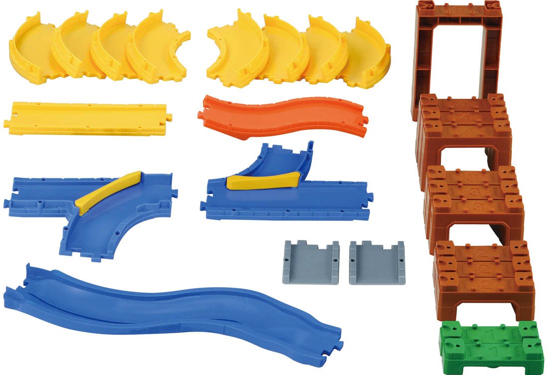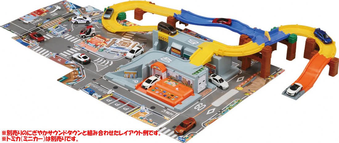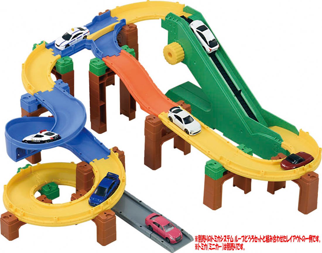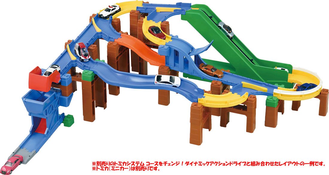 It is a set of parts that you can challenge step by step from the beginning of the Tomica system to complex things using branching / confluence.