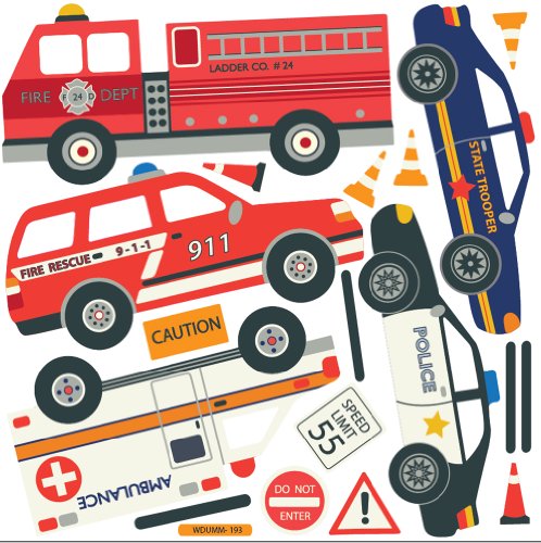 -. Title : EMS Emergency Vehicles Fire Trucks, Police Cars Wall Decals (Repositionable) Peel and Stick!