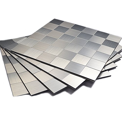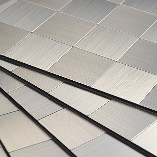 ✔ Each sheet has brushed aluminum matted surface and adhesive backsplash, no grout.