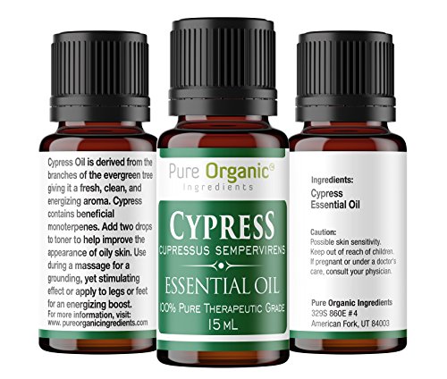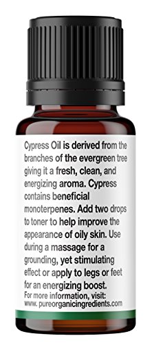-. Title : Cypress Pure Essential Oil 15 ml by Pure Organic Ingredients, Refreshing & Energizing Aroma, Contains Beneficial Monoterpenes, Promotes Healthy Skin, Convenient Dropper Cap Bottle