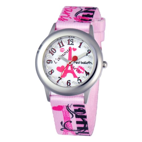 Round Stainless Steel Watch with Paris graphic on dial and Red Balloon shaped seconds hand.