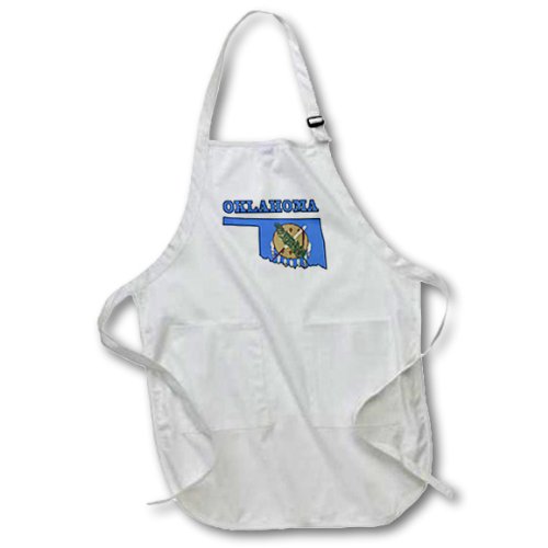3dRose apr_58758_1 Oklahoma State Flag in The Outline Map and Letters for Oklahoma-Full Length Apron with Pockets, 22 by 30-Inch, White