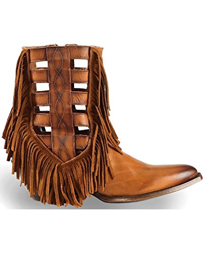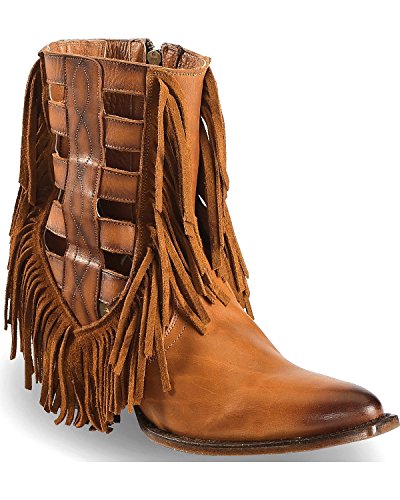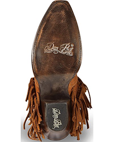 Studio : Dan Post Publisher : Dan Post Binding : Apparel Product Description Get modern cowgirl style in these Dan Post 6" Caged Fringe Western Boots. These boots have a stylish cutout design on the six inch shaft with fun fringe trim and a rounded snip toe. They have side zippers for easy pull on and leather outsoles with a rubber heel cap for stability and support. Wear these boots with jeans or a dress for effortless country style. 0