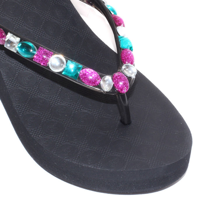 ストラップにカラフルなビジューを散りばめた華やかなビーチサンダルです。様々な形のカラーストーンが映え、オリエンタルムード漂う大人好みな雰囲気を漂わせる一足。クッション性◎のソール部分にはROXYのロゴがプリントされ、見えない部分にもこだわりを感じる仕様。ビーチリゾートはもちろん、春夏のタウンユースなど幅広いシーンで活躍するオススメアイテムです。