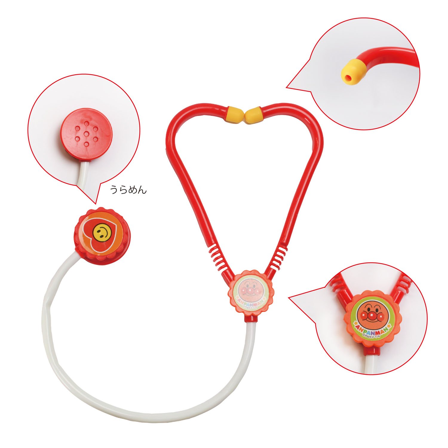 アンパンマンといっしょにお医者さんごっこしよう!聴診器や注射器などが入った、かわいいお医者さんセット。