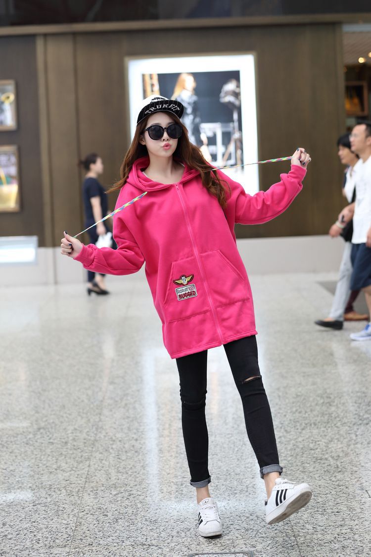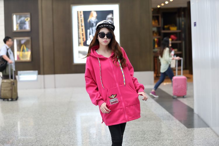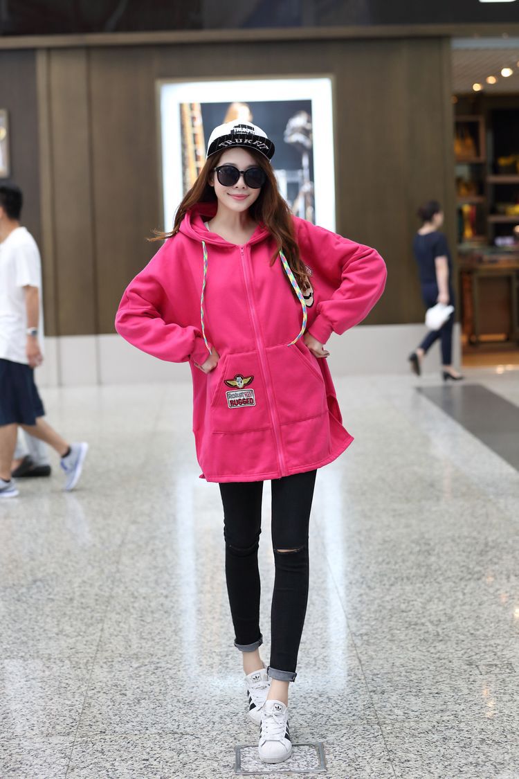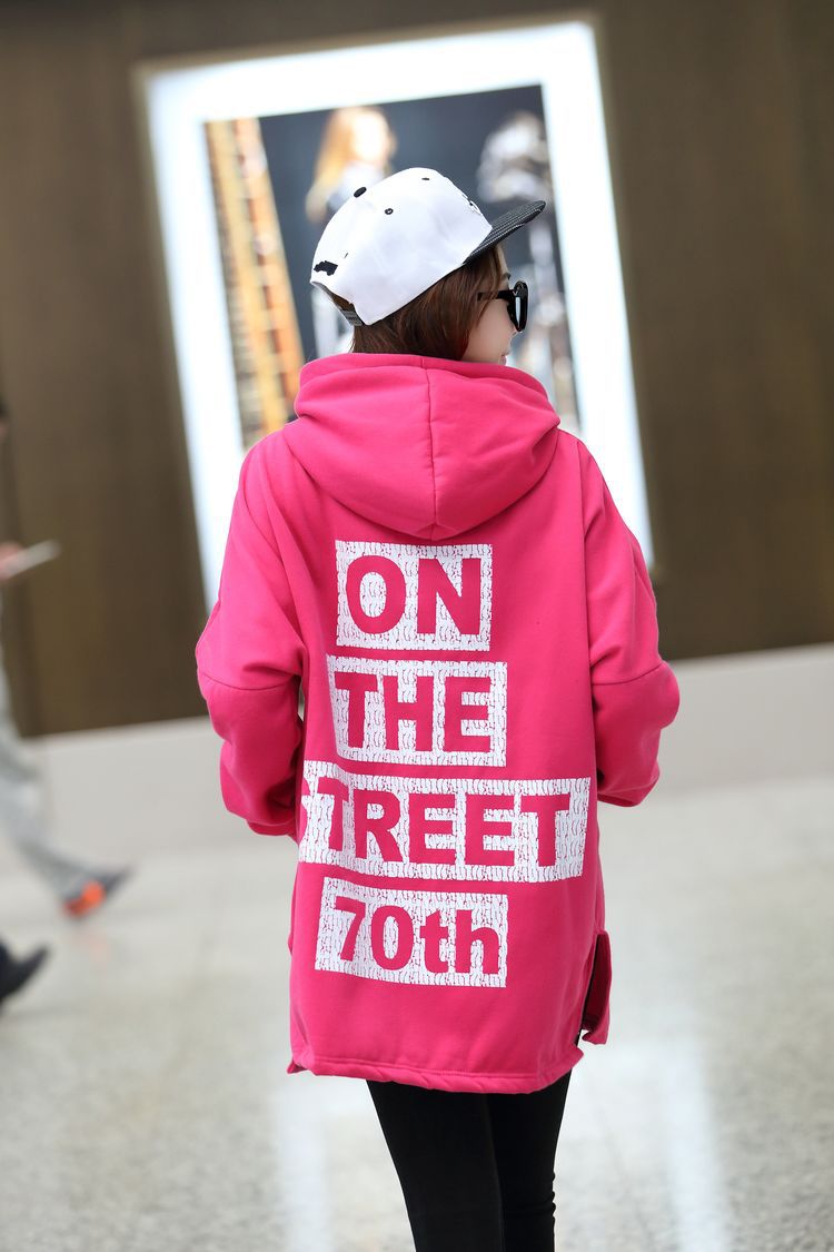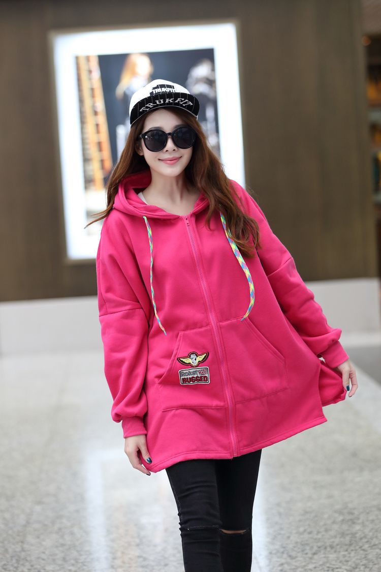 材质:抓毛卫衣颜色:玫红  黑色尺寸:M:  衣长75  胸围162    袖连肩71.5L :  衣长77  胸围166    袖连肩73XL: 衣长80  胸围170    袖连肩75