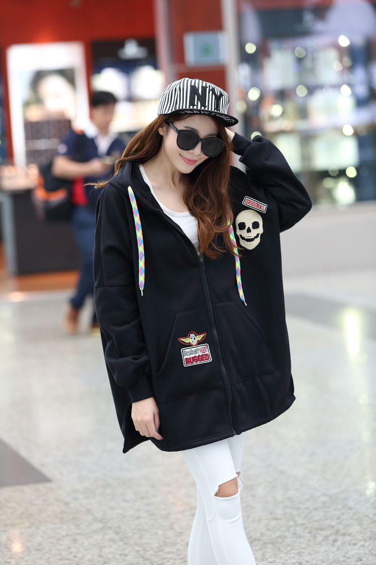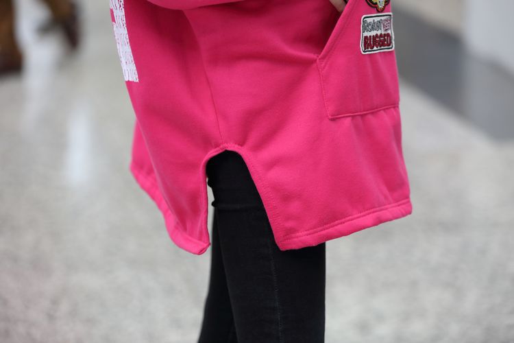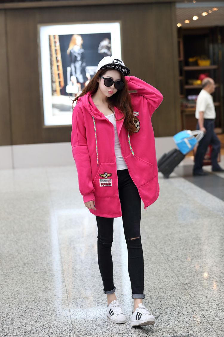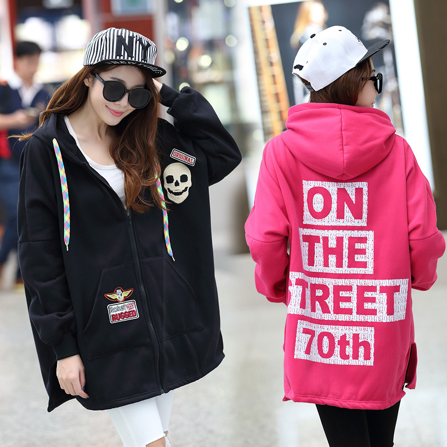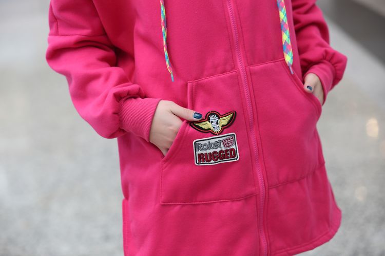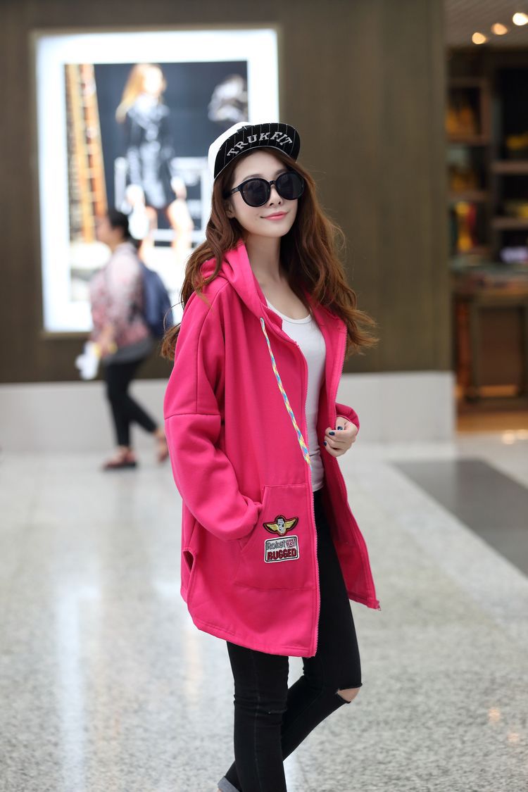材质:抓毛卫衣颜色:玫红  黑色尺寸:M:  衣长75  胸围162    袖连肩71.5L :  衣长77  胸围166    袖连肩73XL: 衣长80  胸围170    袖连肩75