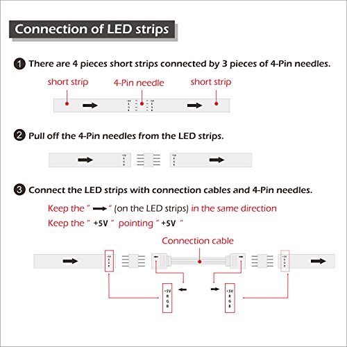 【Package contains】Four pieces of pre-cut LED strips in a roll, just connect them and stick them on the back of tv, that all.