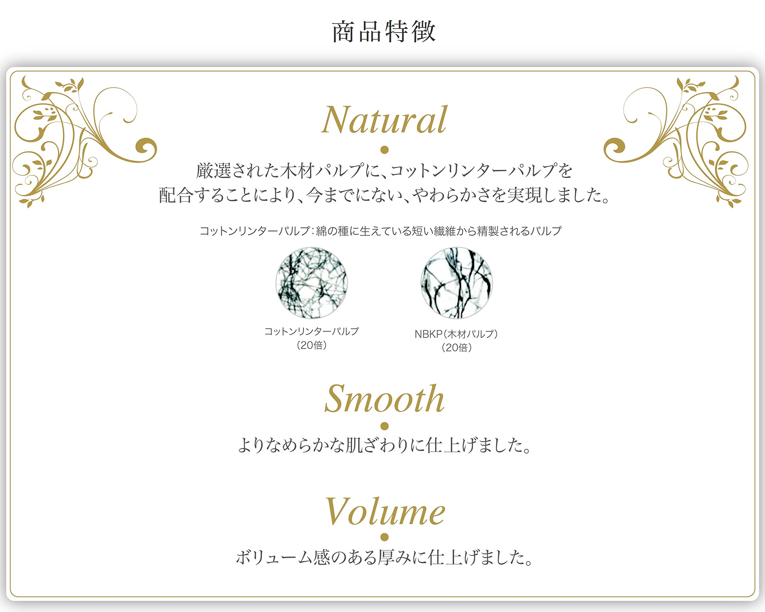 "Cotton Field Tissue 160 pairs (320 sheets) x 5 packs" is a soft and soft tissue that made full use of the natural texture of the material.