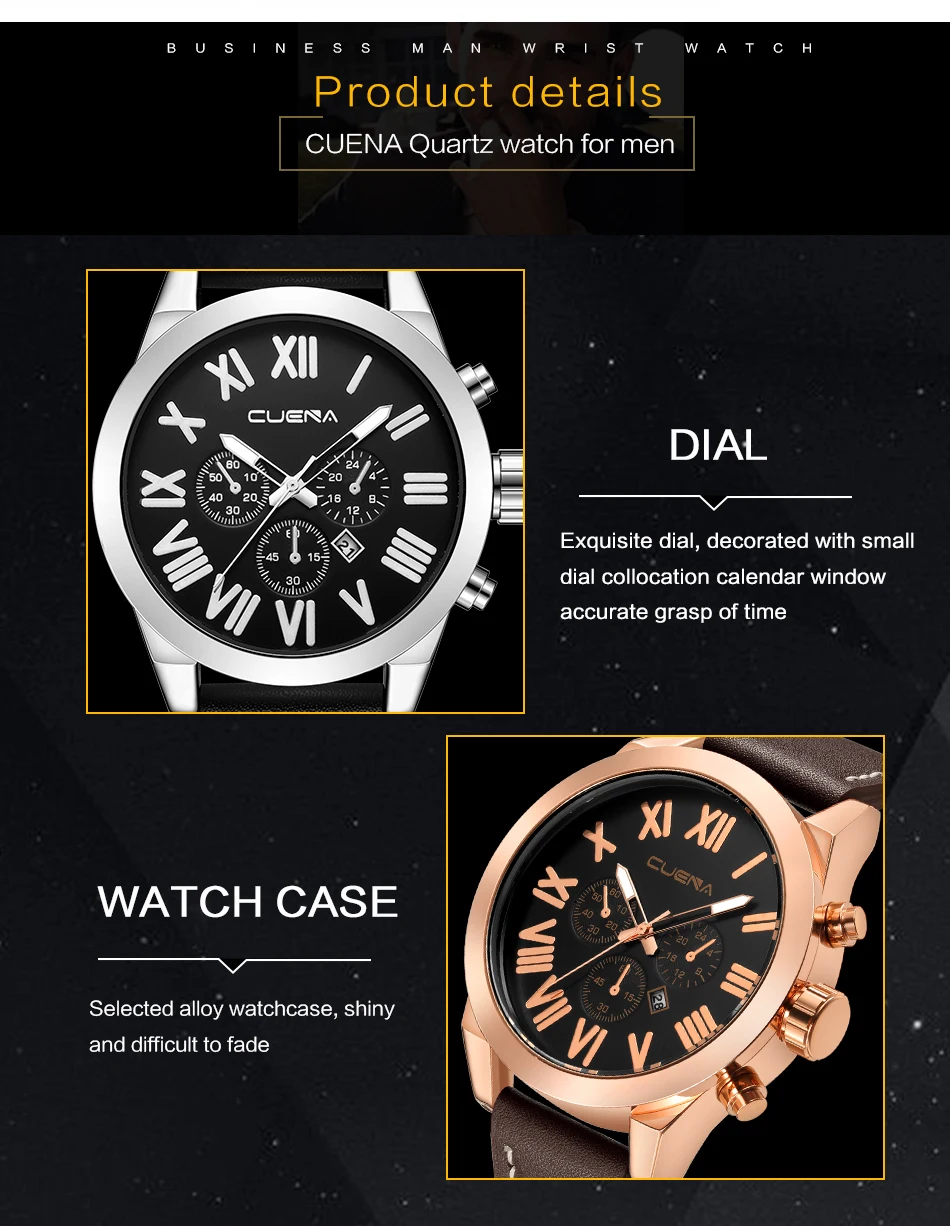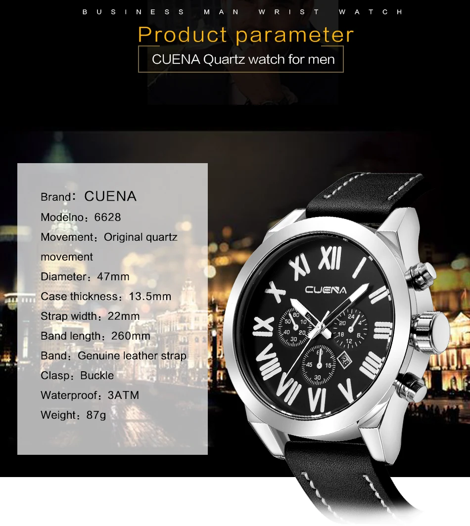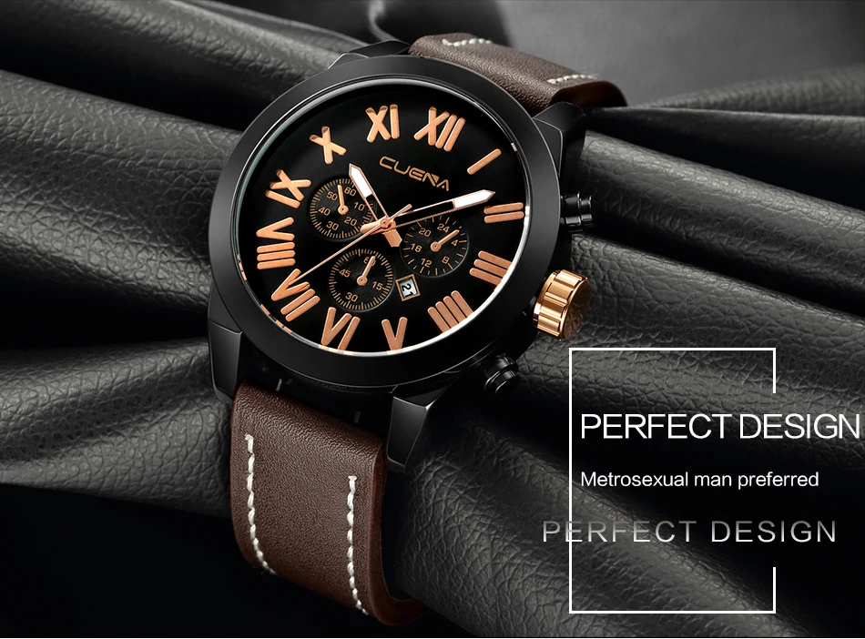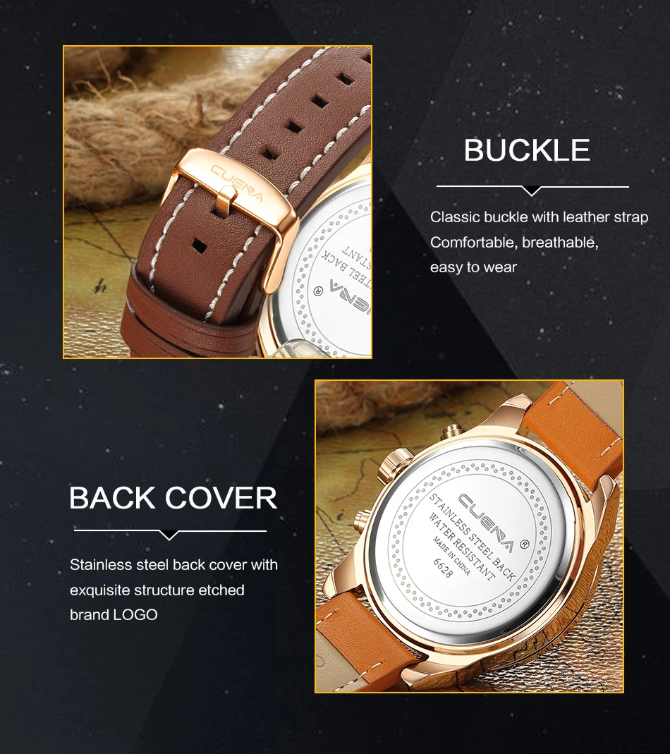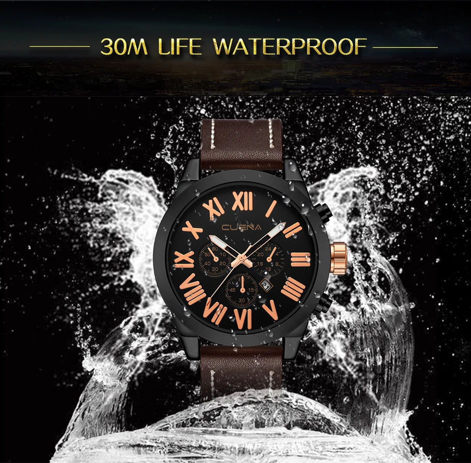 Keywords 3:Men Watch Sport Waterproof Fashion Wristwatch Genuine Leather