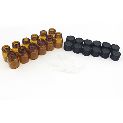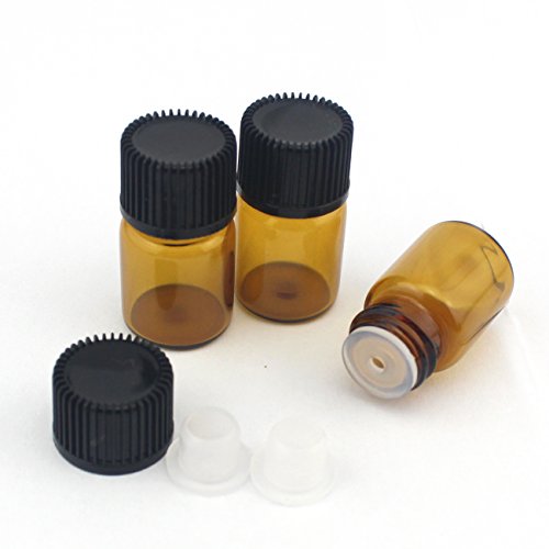 SHIMIE AMBER GLASS ESSENTIAL OIL BOTTLE , 5/8 DRAM (2ML) WITH ORAFICE REDUCERS AND BLACK STRIPE CAP ,12 PACK