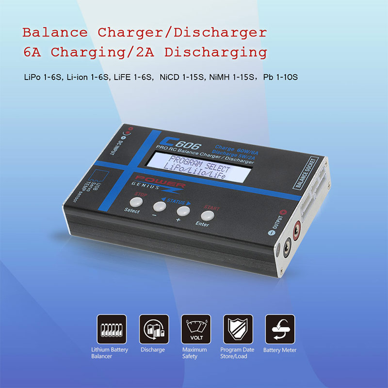 Support 2-6 Cells LiPo; 1-6 Cells Li-ion/LiFE; 1-15 Cells NiCD/NiMH; 1-10 Cells Pb.