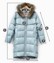 尺码 ①衣长(松度) ②胸围 ③下摆围 ④肩宽 ⑤袖臂围 ⑥袖长 ⑦袖口围