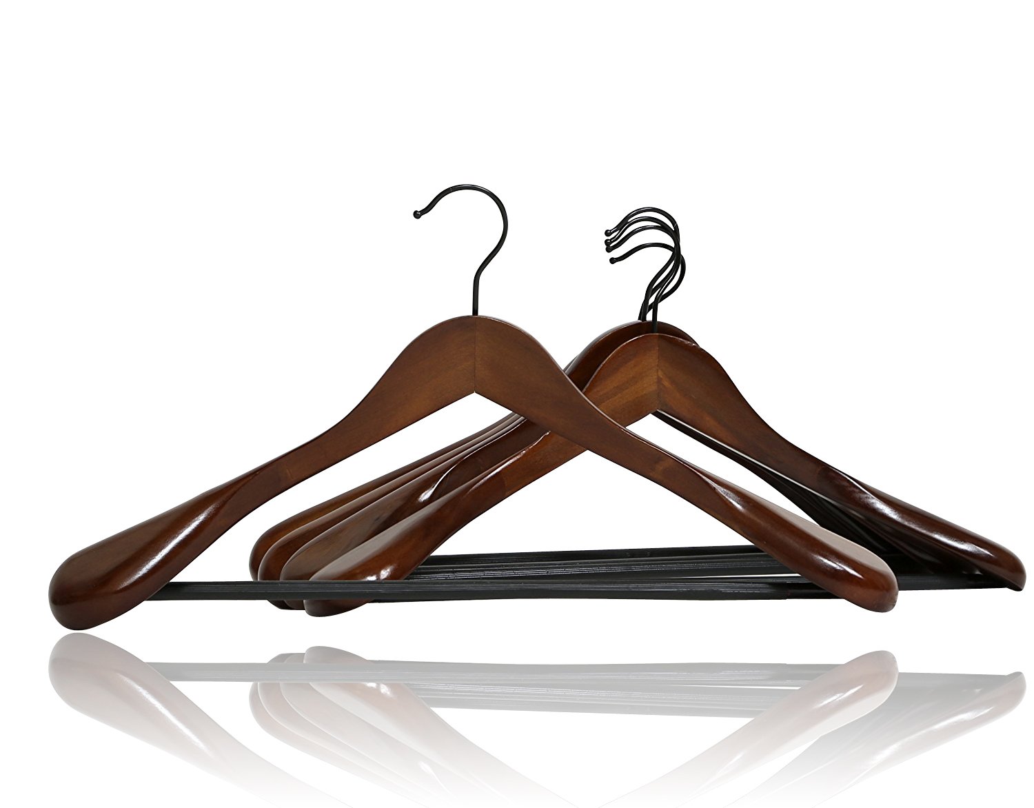 The hanger made from high quality natural wood is beautiful grain, full of luxury, slippery and without burrs, it is strong and hard to crack.