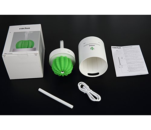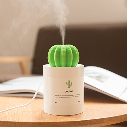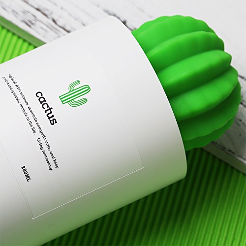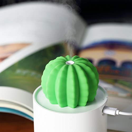 AmuseNd USB Cool Mist Humidifier, Mini Size Cactus Humidifier for Bedroom Home Office Car 280ml 50ml/h with Timed auto shutdown