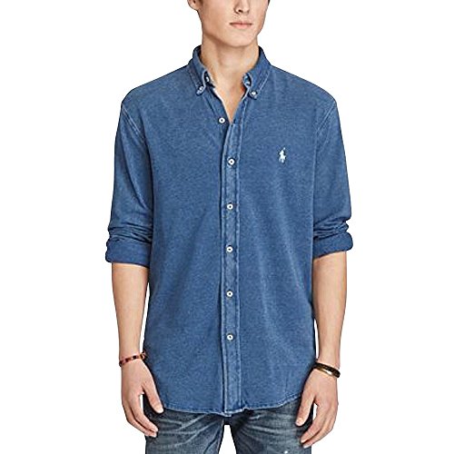 Polo Ralph Lauren Men's Featherweight Cotton Mesh Long Sleeve Shirt, Medium Indigo (Medium Indigo, Medium Indigo)