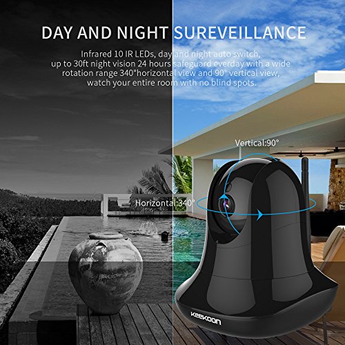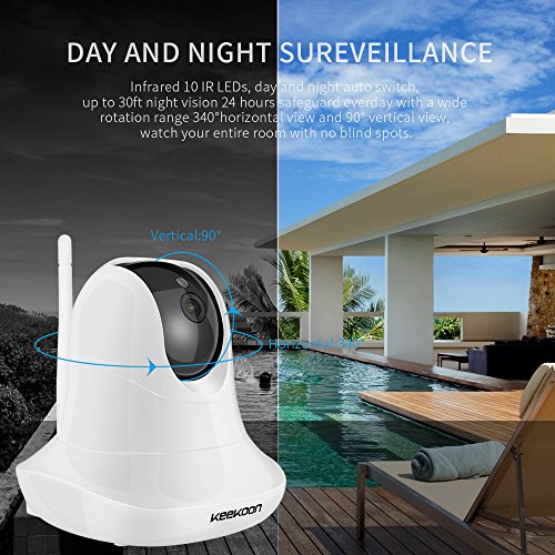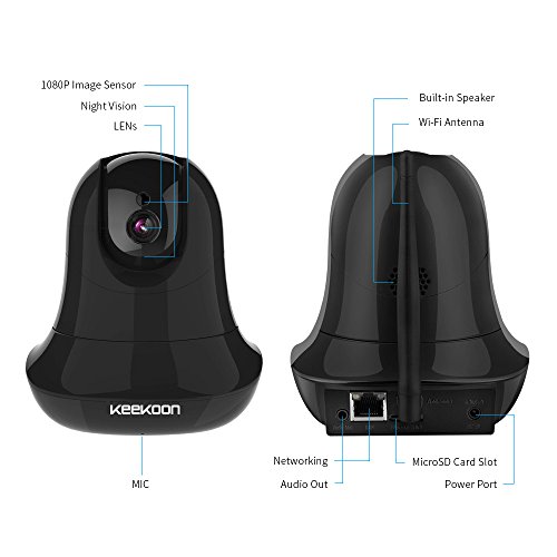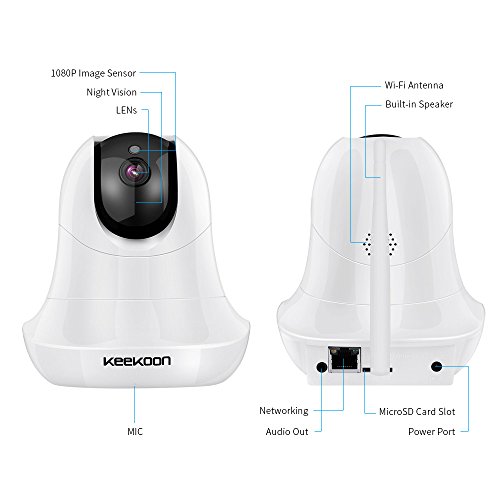 -. Feature : ?CAPTURE EVERYTHING IN HD 360° COVERAGE? Not like 720P, 960H,1080H,Vivid 1080p resolution 2.0 Mega pixel camera give you a clear, crisp video and smooth movements. 340° horizontal and 90° vertical rotation range create a 360° coverage. / ?TWO-WAY AUDIO?You can hear what's going on in the room you're monitoring, and through our mobile app, you can speak directly to anyone in your room. This feature lets you use the KeeKoon as a security camera at your front door, trained on your valuables, or to monitor your child, pets or playroom. / ?MOTION DETECTION?Get push notifications on your smartphone or tablet whenever motion is detected. You can also choose to have the camera record only when it detects a motion in the room. It's not only saves you space on your microSD card but also means you can browse events only and not have to sift through hours of footage like you would with continuous recording. / ?EASY TO USE? You will find KeeKoon 's security camera not just how easy it is to set up. It's just as important to pick the IP camera that quickly and painlessly connects to your Wi-Fi. With our intuitive app so you can get started recording and viewing video right away. / ?NO SECURITY PROBLEMS?NO monthly fee, NO security problems such as be monitored or password is stolen. KeeKoon support 8-64G microSD card, don't have to worry about any extra costs. One-year warranty. If you notice any defects in our camera, get full refund or new replacement within 24 hours!.