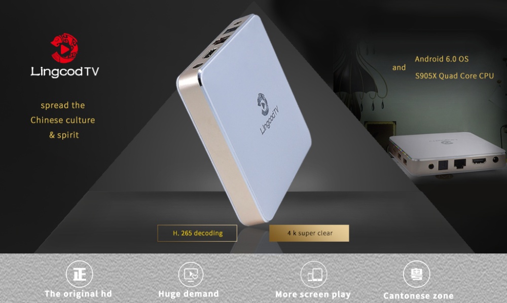 Lingcod TV BOX hardware configuration running memory 1G and 8G memory storage, while driving this smart set-top box Crystal morning S905X chip is an integrated 4-core ARM Cortex-A53 CPU and 5 The Core Mali-450 graphics processor supports 4K @ 60fps video hard decoding and high dynamic range (HDR) processing; supports H.265 / VP9 10-bit and AVS formats for point-to-point display of HDMI2.0b 4K and HDCP2.2 content protection. SDK supports Android, Linux, WebOS, compatible with both 32-bit and 64-bit applications. Intense box chip, the perfect support for playing LingcodTV H.265 high-quality video quality live shows to meet the vast majority of family viewing movie needs!
