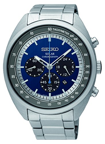 -. Title : Seiko Men's 45mm Steel Bracelet & Case Hardlex Crystal Solar Blue Dial Analog Watch SSC619P1