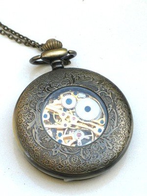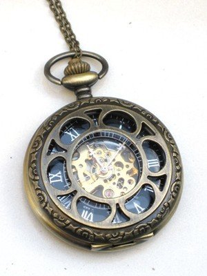 -. Title : Steampunk VINTAGE FLOWER Pocket Watch Mechanical Chain Steam Punk Fob Brass