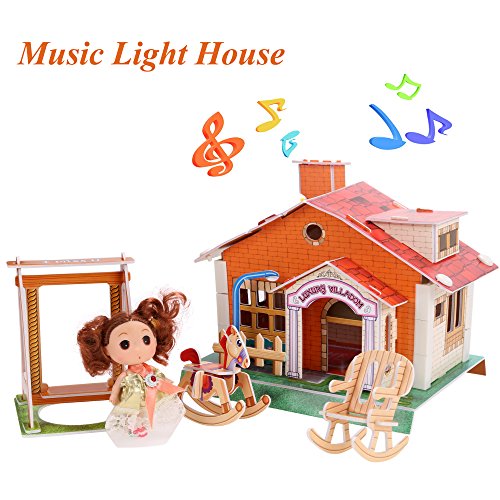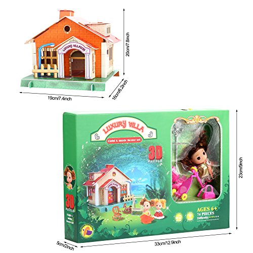 -. Feature : Dollhouse doll playset: Made of high quliaty thickness cardboard, more durable than most. Difficult to damage when assemblying and playing / Delicate craftmanship: 3D stereoscopic real detailed. Each puzzle piece can perfectly insert the slot, smooth and safte incision will not hurt children. Perfect size design for kids's hand / Specially equipped with a brown and big eyes doll girl, girl can set in swing or chairs to enjoy happy sunshine, or use her decorations preparing for an long-awaited dating / Puzzle house design classic unique field country style, with soft light and wonderful music surrounded, seems fall into an fantasy land, reapper one or more fascinating life storys / Also a artwork for kids's bedroom. Exquisite color gift box: perfect gift for children's birthday, christmas, any special festivals, not for children under 3 years
