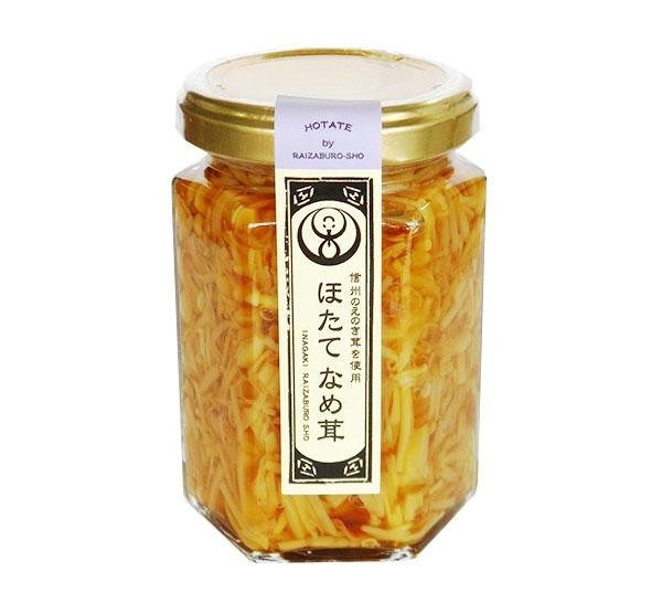| 原材料 | えのき茸(国産)、ほたて、醤油、砂糖、発酵調味料、醸造酢、醤油もろみ、昆布エキス、かつお節エキス、貝エキス、唐辛子、寒天、調味料(アミノ酸等)、酸味料、甘味料(トレハロース)、酸化防止剤(V.C)、(原材料の一部に小麦、大豆を含む) |