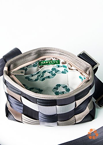 Amazon.com The Treecycle tote from Harvey's is an innovative little accent to laid-back style. The body and handles, like those of all Seatbeltbags, are made of sturdy, long-lasting webbing strips with a down-to-earth basket-weave construction, and inside is a cute, logoed lining. Don't be fooled by its mid-size profile and light weight: this bag's a natural when it comes to transporting all your daily essentials. 0