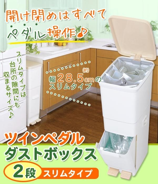 | 調理中や皿洗い中、手を汚したくない時に便利☆ペダルを踏めばゴミ箱の蓋が開け閉めできるダストボックスです。上段・下段に分かれており、更に両サイドにはスーパーの袋等を下げられるフック付!!ゴミの分別もしっかりできます。カビにくい抗菌加工銀イオン配合で衛生的♪ |