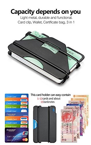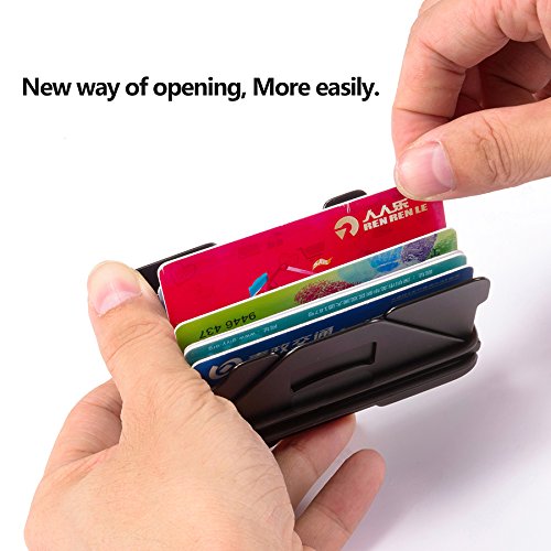 -. Feature : The RFID protection card holder can perfectly block unwanted RFID scanners, includes RFID blocking technology to prevent unauthorized access to personal information, designed to block RFID readers from scanning your credit cards, debit cards, banking information, smartcards / This RFID Aluminum card holder is very small and light, easy to carry for a day to day traveling or for business occasion, perfect for business cards, name cards, credit cards etc / When you go for a picnic, if you want to open some beer, it is right here, just remove the piece that can open the bottle, no need to buy an additional bottle opener with you. / No more wasting time finding the right card! Ability to quickly & efficiently pull out the card, bottle openers with little to no effort. Very slim and light weight. / perfect present for father, son, husband, friend, and who always go with multiple cards or name cards, 100% satisfaction guaranteed