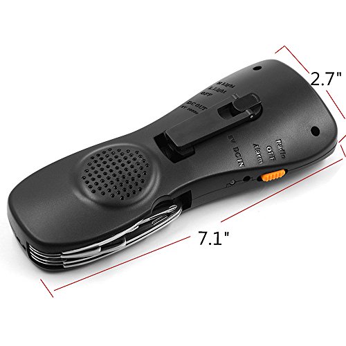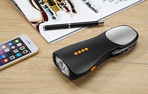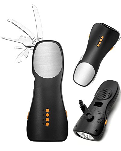 iRonsnow IS-068 Emergency Hand Crank Dynamo LED Flashlight with Swiss Knife Tool kit, 1800mAh Power Bank, FM Radio, SOS Alarm (Black)