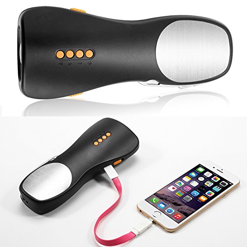 1800mAh, charge cell phone directly, no need to crank. When no power, crank charge mobile as well.
