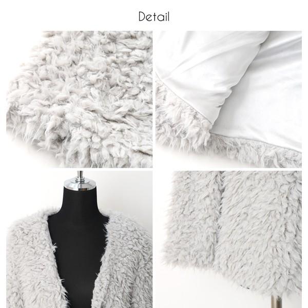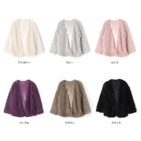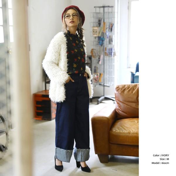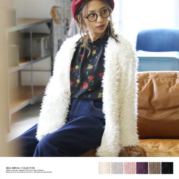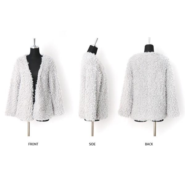 ■一気に華やかムード◎ボアノーカラーカーディガン■ライトアウター感覚で使える、ボアノーカラーカーディガン。ついつい触りたくなるような、肌触りのよいふわふわのボアがシーズンムードたっぷり。裏地付きでさらりと着られて、ボリュームたっぷりのシルエット。ノーカラーだから、カジュアルにもキレイめにもスタイリングできます。シンプルコーデも華やかにしてくれるアイテム。合わせるボトムを選ばないミドル丈だから、幅広いシーンで大活躍の予感です。モデル:160cm着用カラー:アイボリー伸縮性:なし裏地:あり透け感:なし生地の厚さ:薄手肌ざわり:ふわふわボア【サイズ】 Mサイズ 着丈/65cm 身巾/47cm 肩巾/54cm 袖丈/50cm【素材】 ポリエステル100%