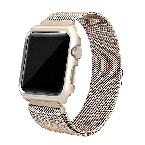 -. Title : Ramida Stainless Steel Strap Apple Watch Milanese Strap Watch Box Apple Watch Bracelet Apply For Apple Watch 1 & Apple Watch 2 Connector Size 38mm (Gold)