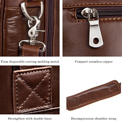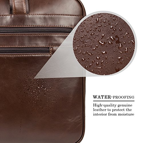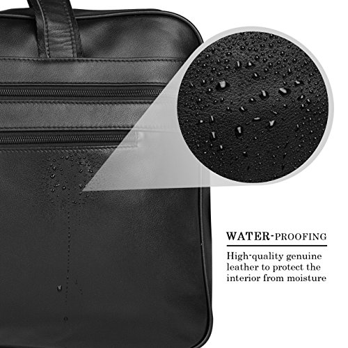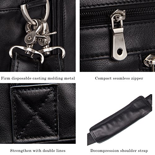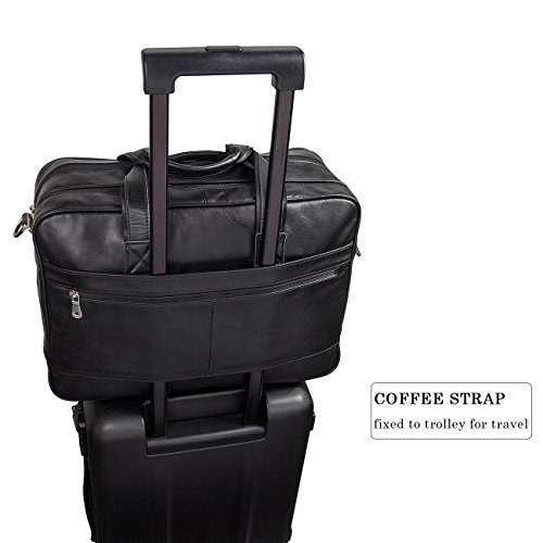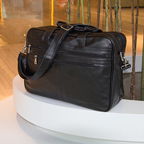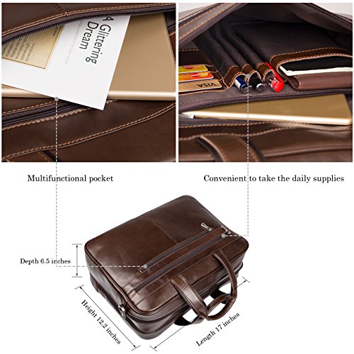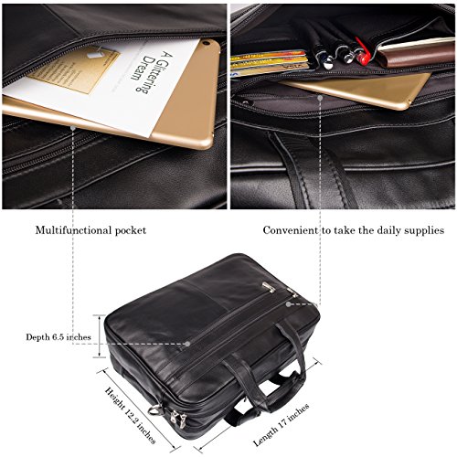 -. Brand : Augus -. ClothingSize : One_Size -. Department : mens -. Feature : Crafted from 100% genuine leather / Size : 17.5" L X 5.5" W X 12" H. Three zippered pockets in front, three zippered pockets at the top and a secret zippered pocket in the middle. / Suitable for a short business trip or a quick weekend getaway. / Detachable shoulder strap / If you are unsatisfied with our product for any reason, we promise 100% refund guarantee. -. ProductGroup : Apparel -. ProductTypeName : APPAREL -. Size : One_Size -. Title : Augus Business Travel Brifecase Genuine Leather Duffel Bags for Men Laptop Bag fits 17 inches Laptop