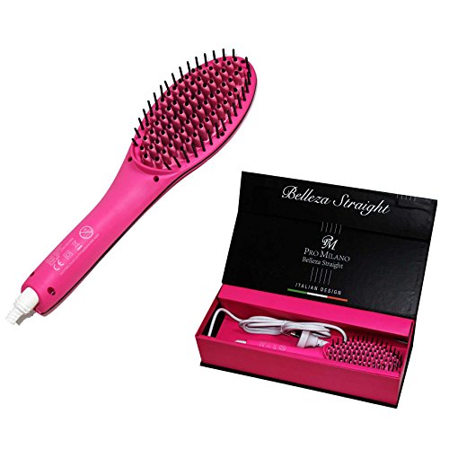 PU Beauty Pro Milano Belleza Ceramic Salon Grade Hair Straightener and Styling Brush, Pink, 20 Ounce
