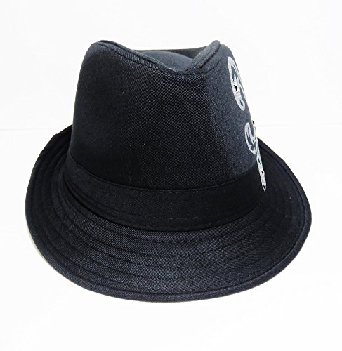 -. Title : Black Fedora with Silver Glitter Fleur De Lis Cap Headwear Accessories